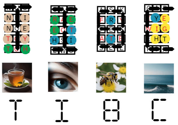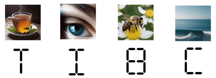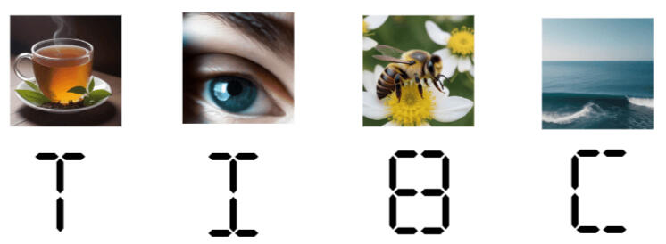 THE 4 PICTURES STOOD FOR THE LETTERS T, I, B AND C