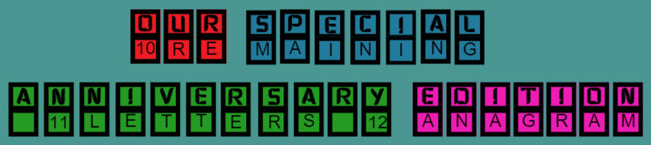 If you rearranged the top letters to form the words "OUR SPECIAL ANNIVERSARY EDITION", you'll have formed 3 new words with the lower letters.